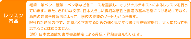 硬筆・毛筆・ペン字・筆ペン指導に加え、「速書き」「漢字検定受験対策」なども学べます。